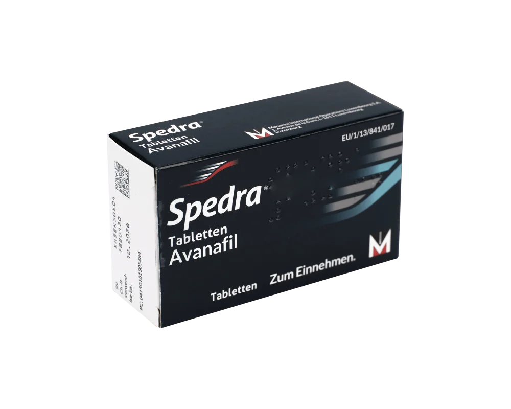Spedra® ist ein Medikament zur Behandlung von Erektionsstörungen (erektile Dysfunktion). Der enthaltene Wirkstoff, Avanafil, ist ein sogenannter PDE-5-Hemmer. Diese Wirkstoffe verbessern die Durchblutung im Penis und ermöglichen so eine festere und länger anhaltende Erektion. Spedra® ist das neueste Medikament der Wirkstoffgruppe und wie alle PDE-5-Hemmer nur nach ärztlicher Untersuchung und mit Rezept erhältlich. Die empfohlene Dosierung ist 100 mg. Die Wirkung der Tabletten setzt bereits nach 15-30 Minuten ein und kann bis zu 6 Stunden anhalten.