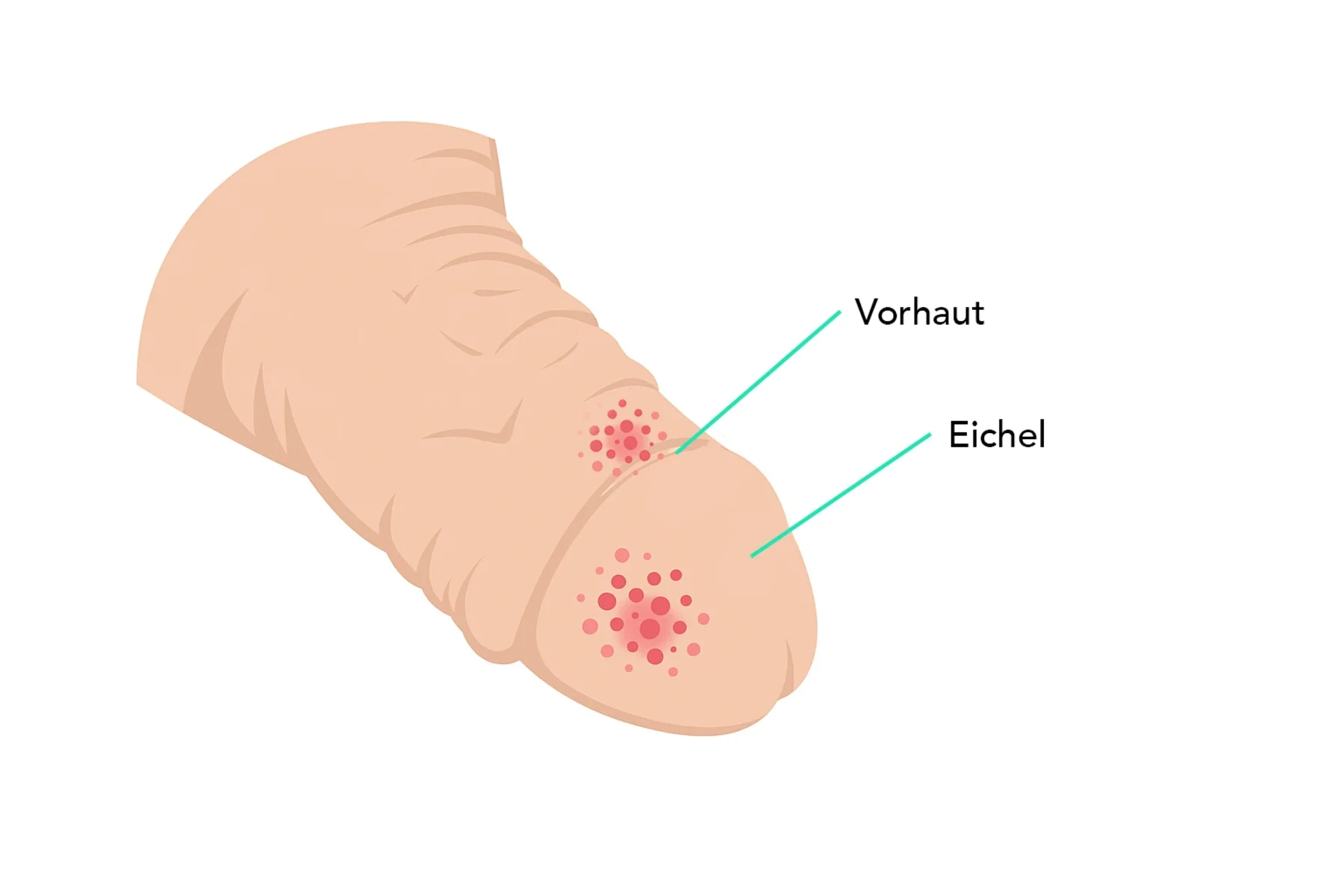 Peniskrebs erkennt man zuerst an Veränderungen der Penishaut, vor allem an der Eichel oder der Vorhaut. Das können Knoten, Verhärtungen, offene Stellen oder Rötungen sein. Manchmal kommt es auch zu Ausfluss, unangenehmem Geruch oder Blutungen. Diese Auffälligkeiten sind meist schmerzlos, sollten aber unbedingt ärztlich abgeklärt werden, vor allem wenn sie länger als vier Wochen bestehen.